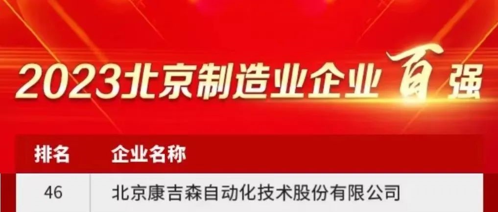 近日,北京企業(yè)聯(lián)合會、北京市企業(yè)家協(xié)會共同發(fā)布2023北京企業(yè)百強榜單。繼陸續(xù)上榜2021年“北京民營企業(yè)社會責(zé)任百強”、2022年“北京民營企業(yè)中小百強”后,康吉森榮登“2023北京制造業(yè)百強”榜單。