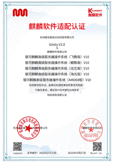 iUnity 在經(jīng)過嚴(yán)格的壓力測試和長期穩(wěn)定性測試后,成功通過了與銀河麒麟高級服務(wù)器系統(tǒng)(Linux)的互認(rèn)證。無論是在復(fù)雜的工業(yè)控制環(huán)境中,還是在需要高精度、高可靠性的流程控制場景中,iUnity 都能表現(xiàn)出優(yōu)異的性能,確保生產(chǎn)過程的安全、穩(wěn)定與高效。